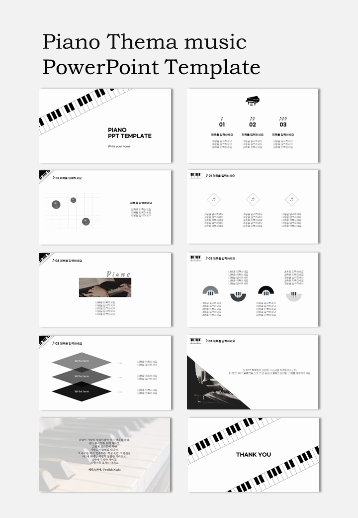 피아노 음악 PPT 템플릿 (A00058)