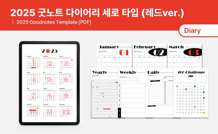 2025 굿노트 다이어리 세로 타입 (레드 ver.)