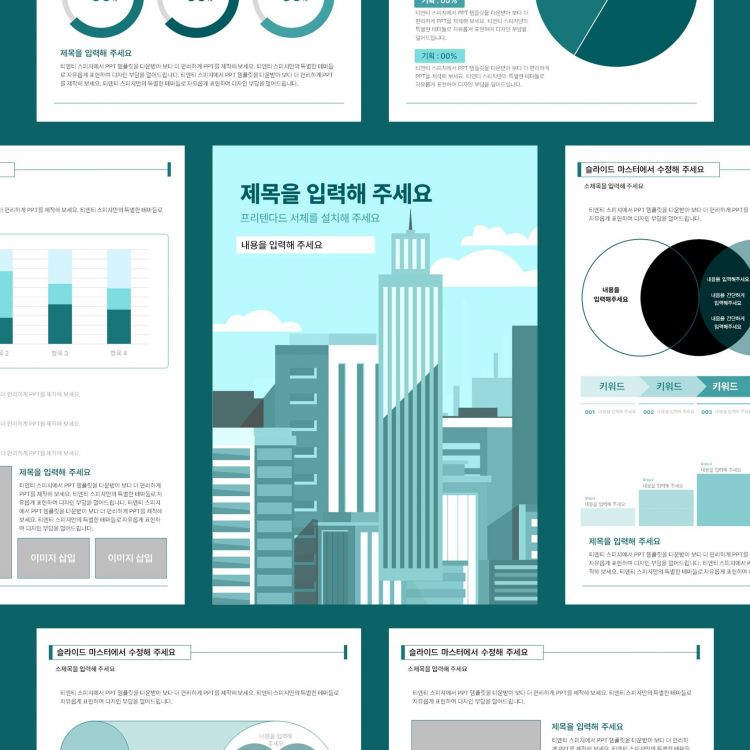 민트 도시 일러스트 제안서 A4 PPT 템플릿(B168)