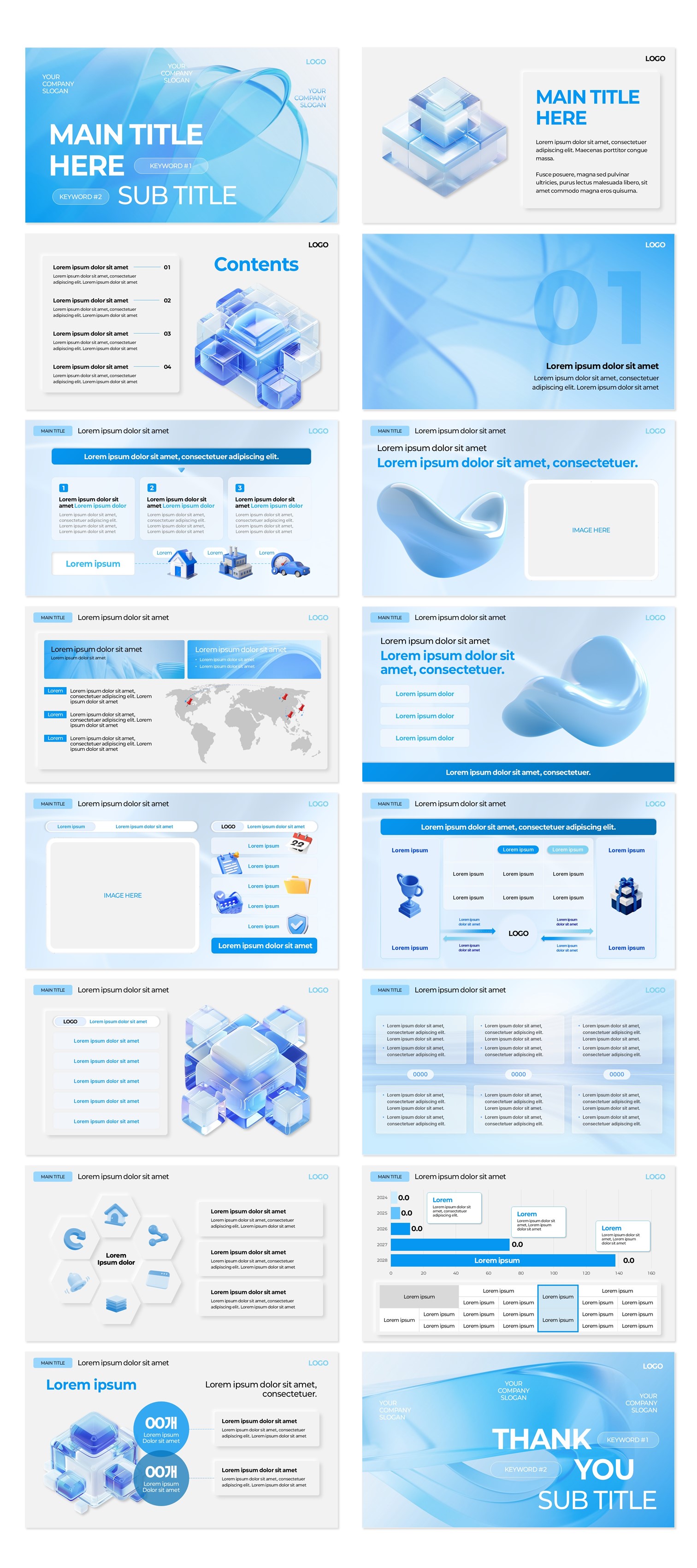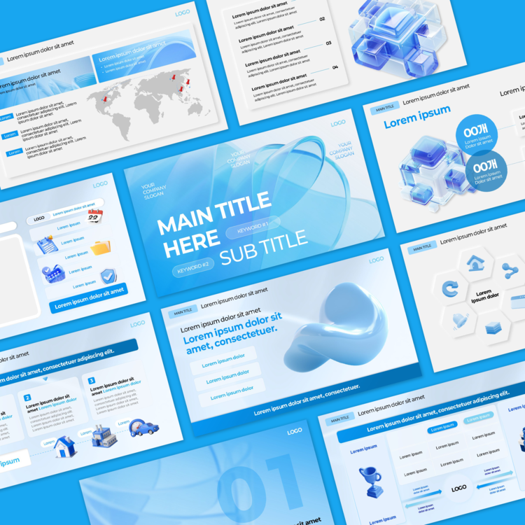 뉴모피즘 블루 그래픽 PPT 템플릿(B198)