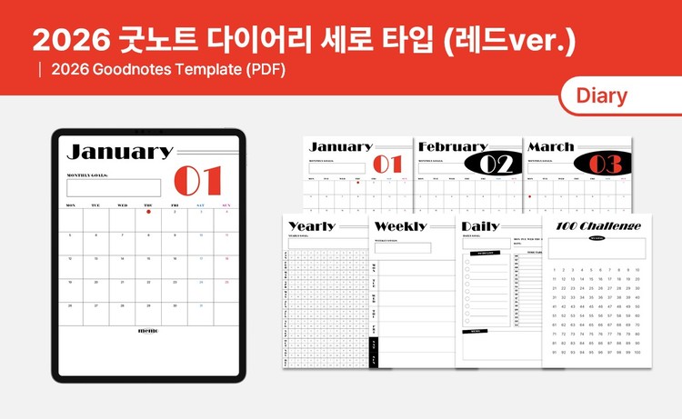 2026 굿노트 다이어리 세로 타입 (레드 ver.)
