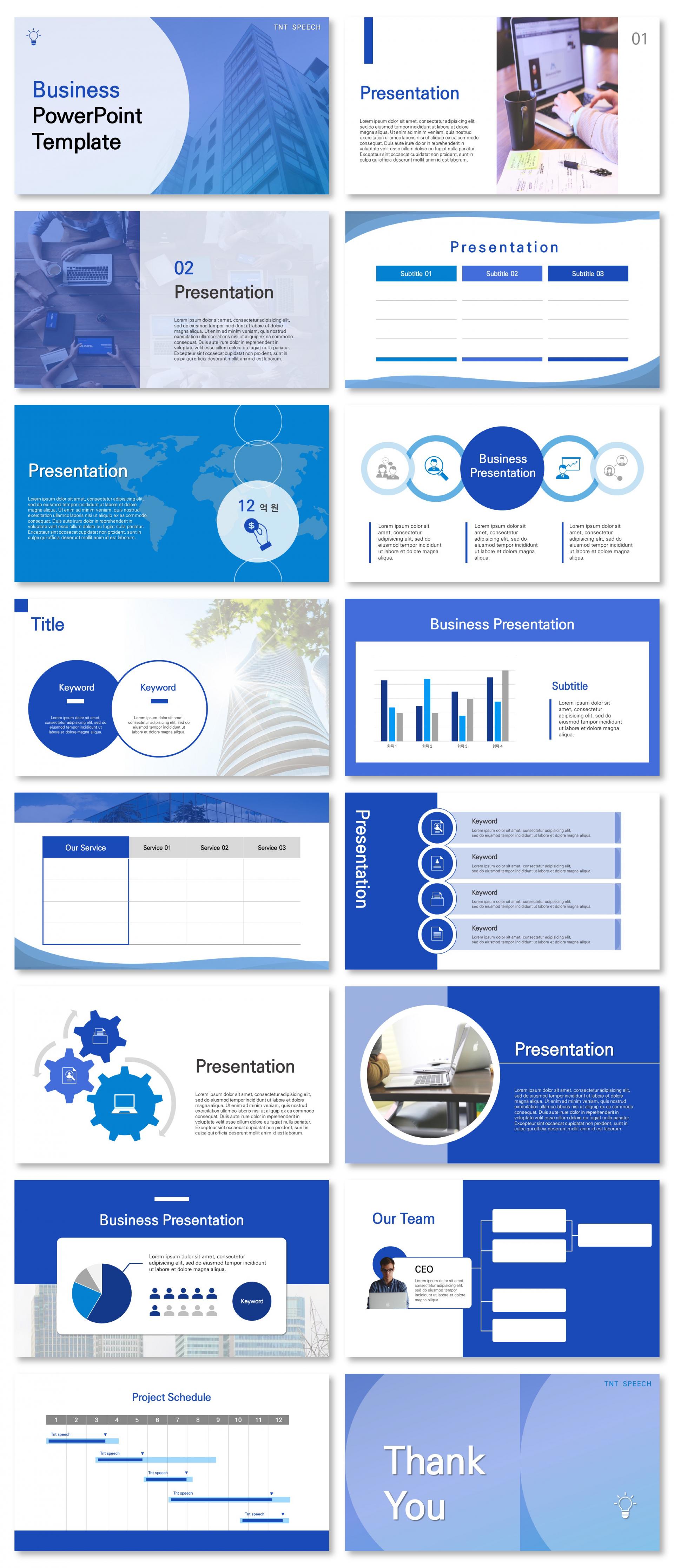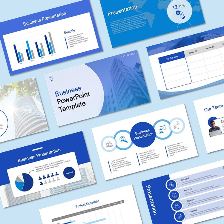 선명한 블루 비즈니스 PPT 템플릿 (B54)